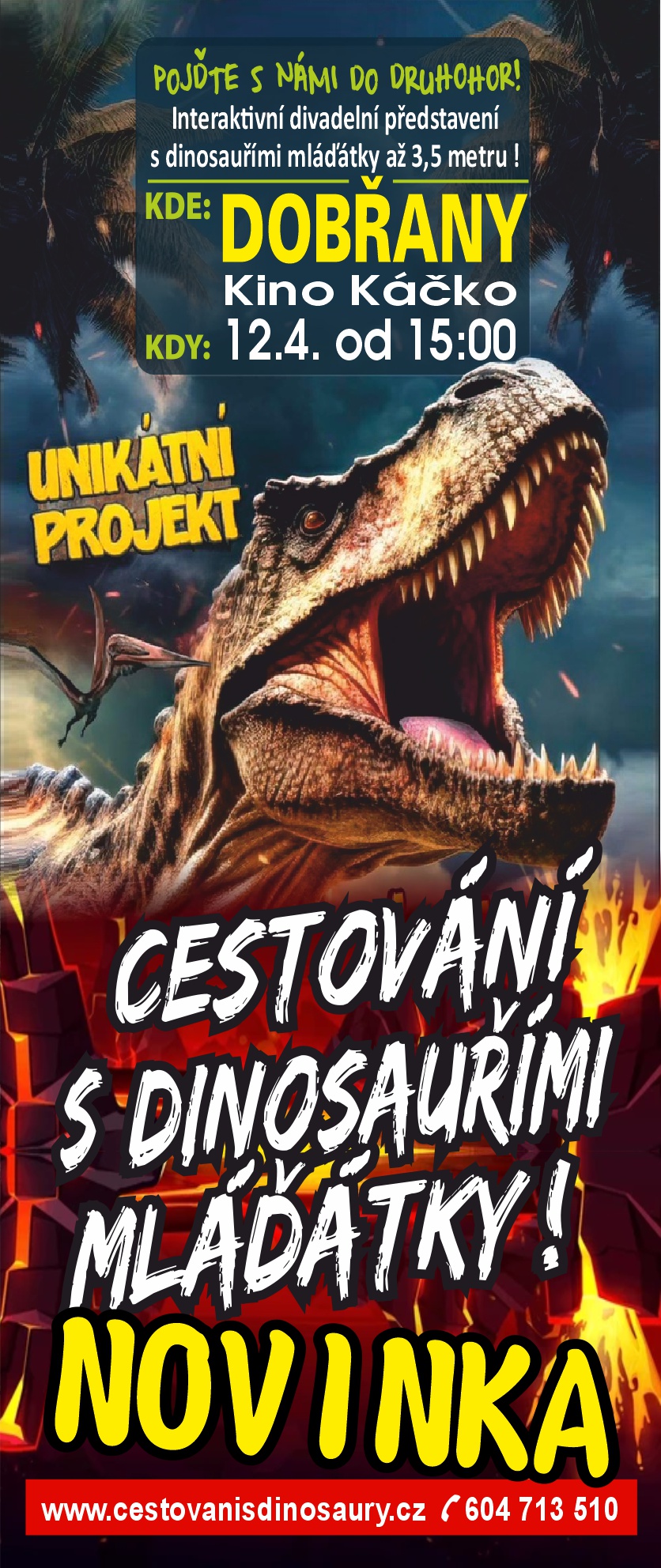 Jedná se o interaktivní divadelní představení, vedené formou přednášky, která je koncipována pro děti předškolního věku a děti na základních školách na téma život dinosaurů v druhohorách. Toto představení je doplněno replikami fosilií ve skutečných velikostech a animatronickými dinosaury různých velikostí od malých mláďátek až po 3,5 metrové exempláře. Naši dinosauři jsou ovládáni 1 až […]